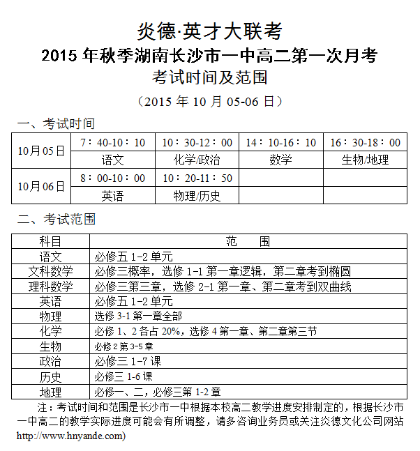 下一篇:炎德英才大聯考長沙市一中2015年秋季高二期中考試時間和范圍(2015.11.06-07)