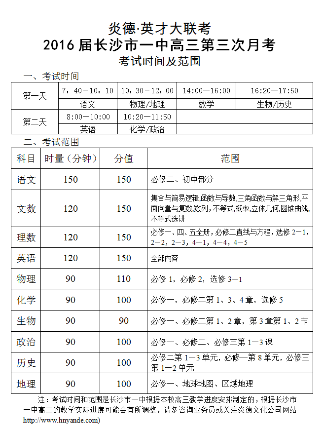 上一篇:炎德英才大聯考長沙市一中2016屆高三月考考試時間和范圍