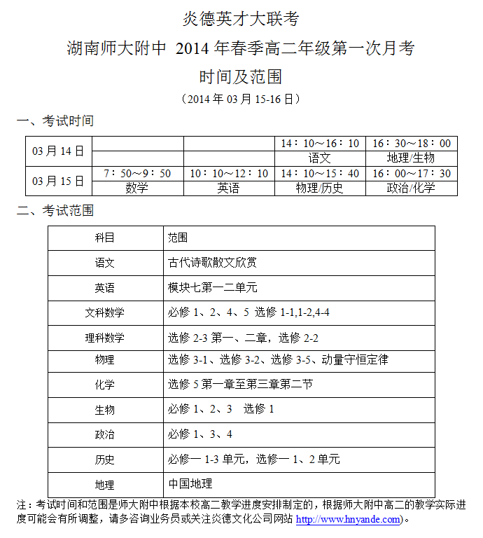 上一篇:2014年春季師大附中高二年級入學摸底考試時間及范圍(2014.02.15-16)
