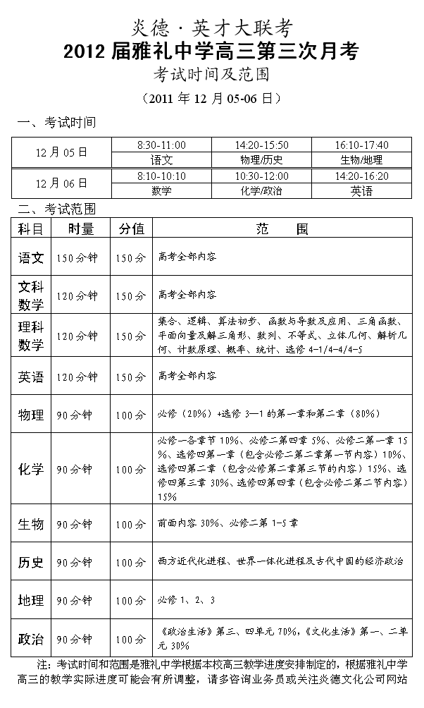 來(lái)源:炎德文化點(diǎn)擊:2011-11-28 16:33:00收藏本文當(dāng)前位置:考試范圍 雅禮中學(xué) 高三 正文
