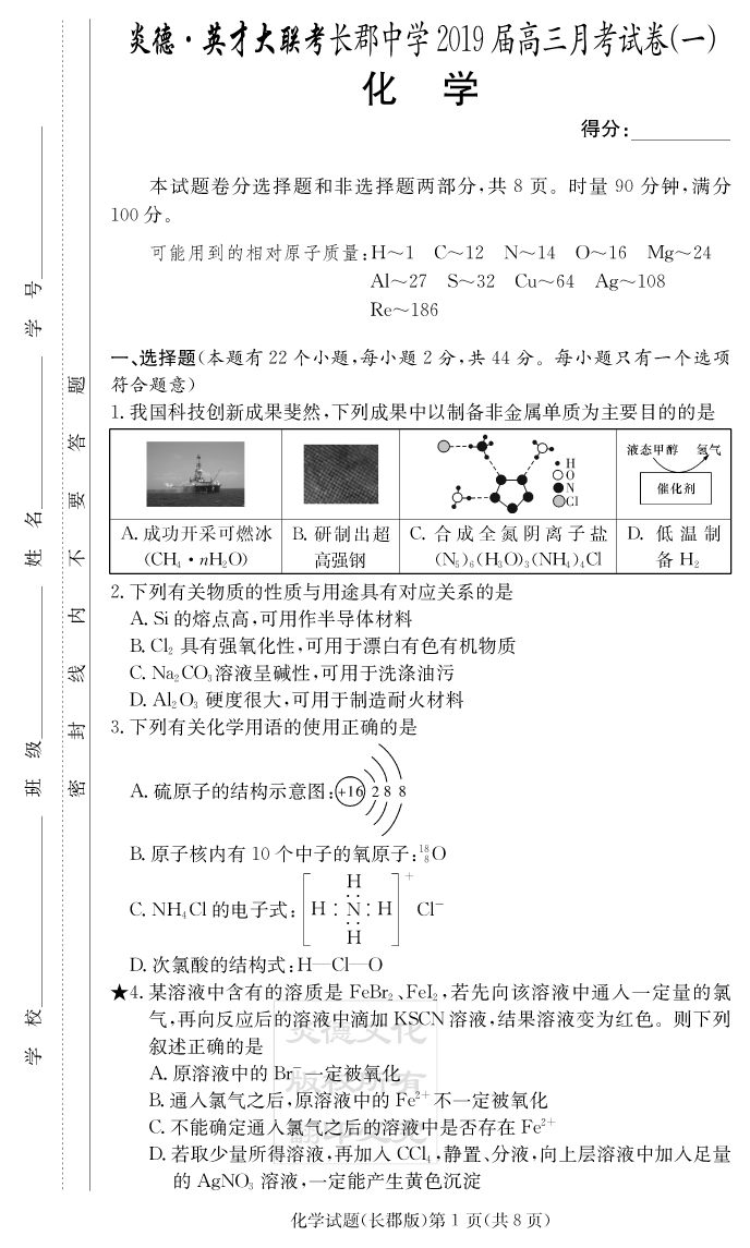 2026湖南師大附中新高考考前小題訓練·化學