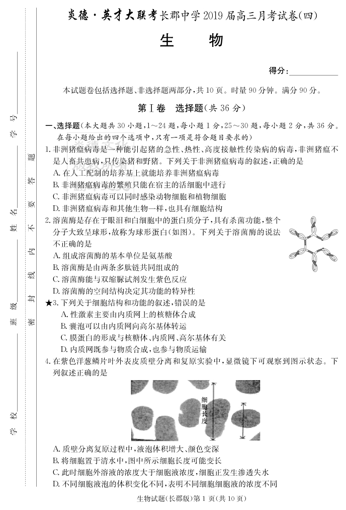 2026湖南師大附中新高考考前小題訓練·生物