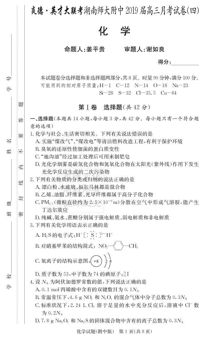 2026湖南師大附中新高考考前小題訓練·化學
