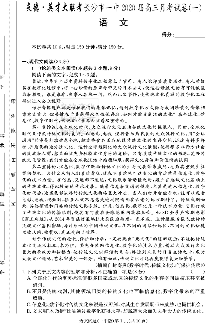 上一篇:【英語】炎德英才大聯考2020屆長沙市一中高三1次月考