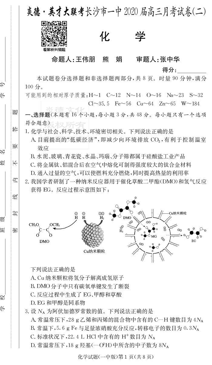 2026湖南師大附中新高考考前小題訓練·化學