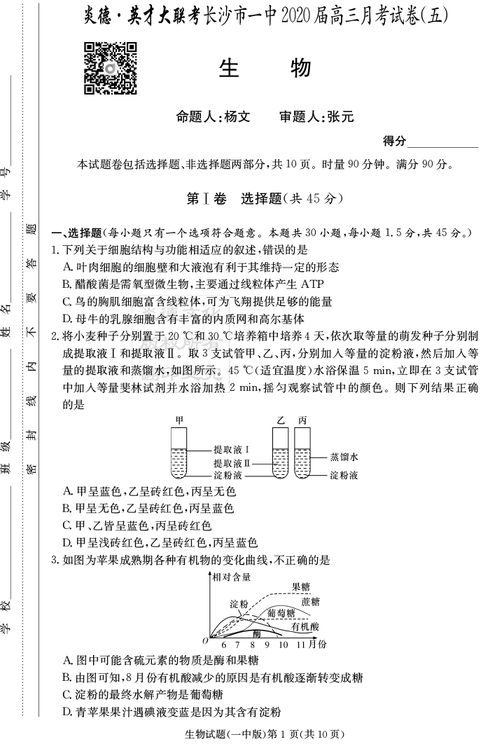 2026湖南師大附中新高考考前小題訓練·生物