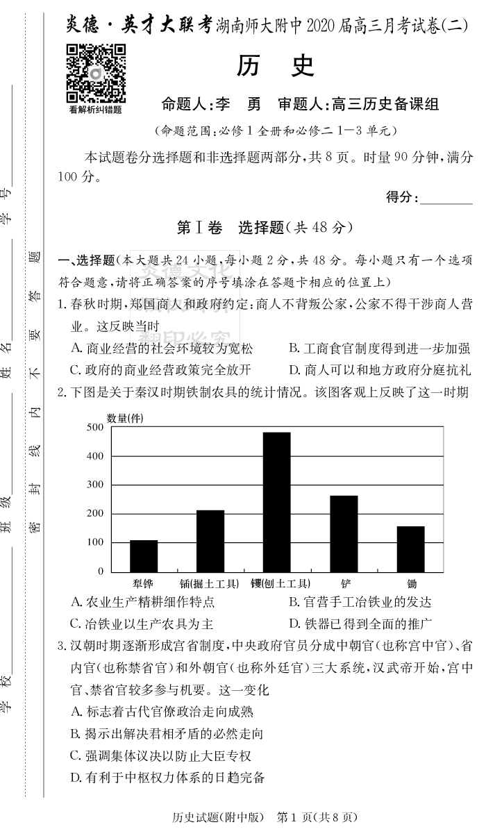 2026年高中寒假作業自主學習作業本·高三年級·歷史