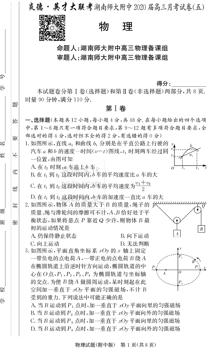 【物理】炎德英才大聯(lián)考2020屆師大附中高三5次月考