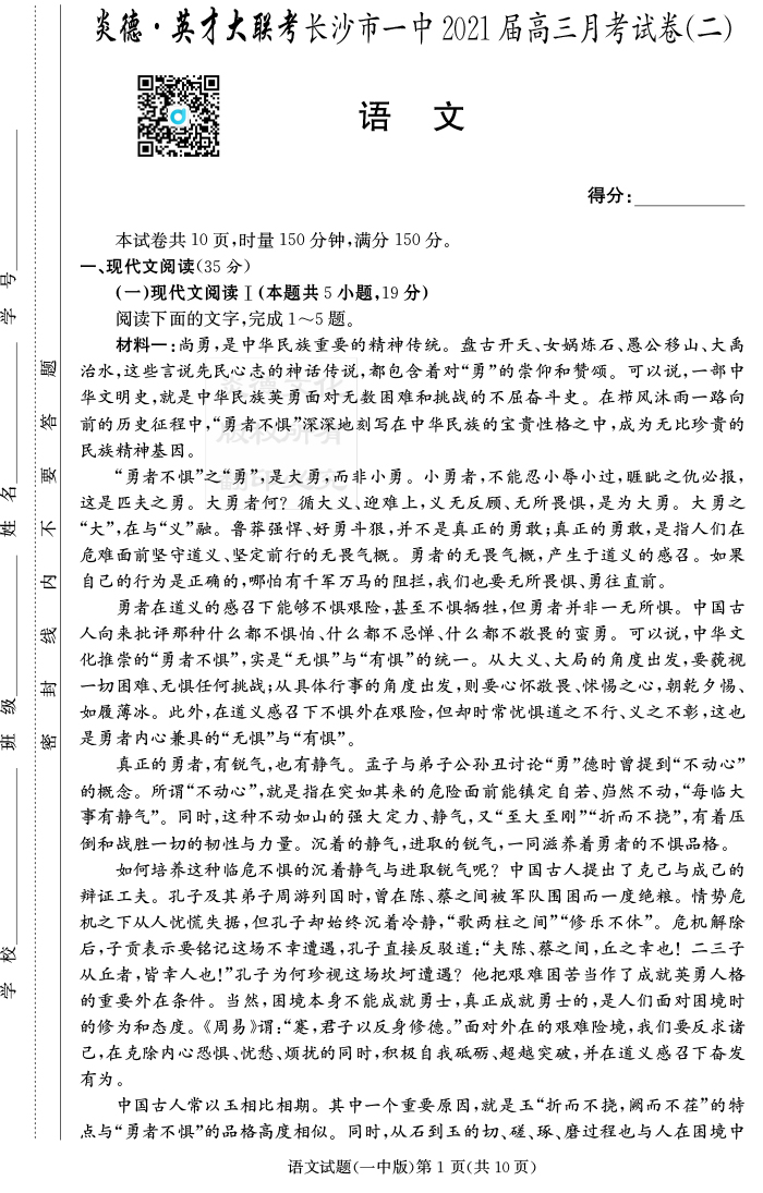 2026湖南師大附中新高考考前小題訓練·語文