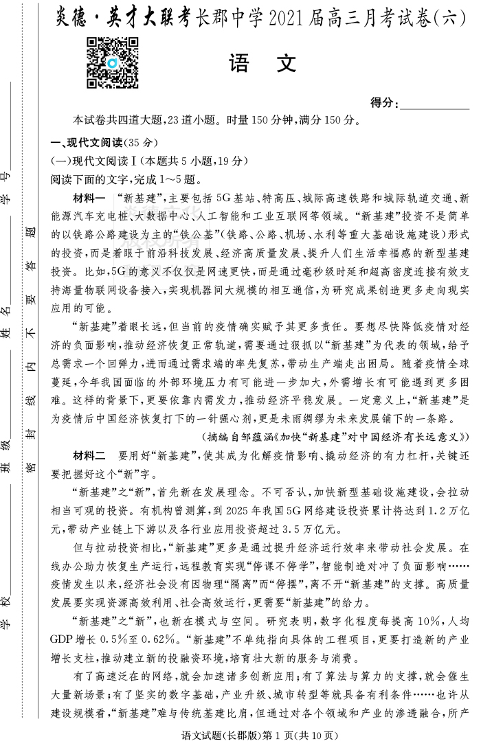 2026湖南師大附中新高考考前小題訓練·語文