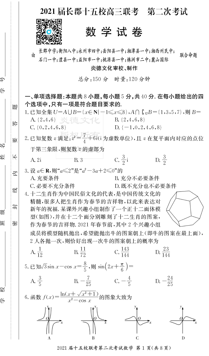 上一篇:【生物】炎德英才大聯考2021屆長郡中學高三8次月考(十五校聯考二)