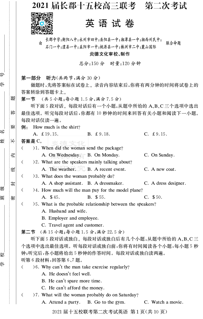 下一篇:【語文】炎德英才大聯考2021屆長郡中學高三8次月考(十五校聯考二)