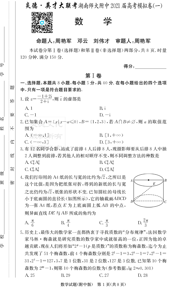 下一篇:【物理】炎德英才大聯考2021屆湖南師大附中高三8次月考(模擬一)