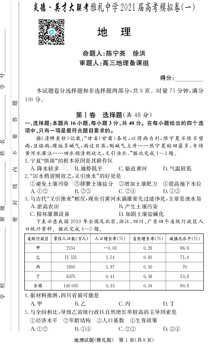 上一篇:【政治】炎德英才大聯考2021屆雅禮中學高三8次月考
