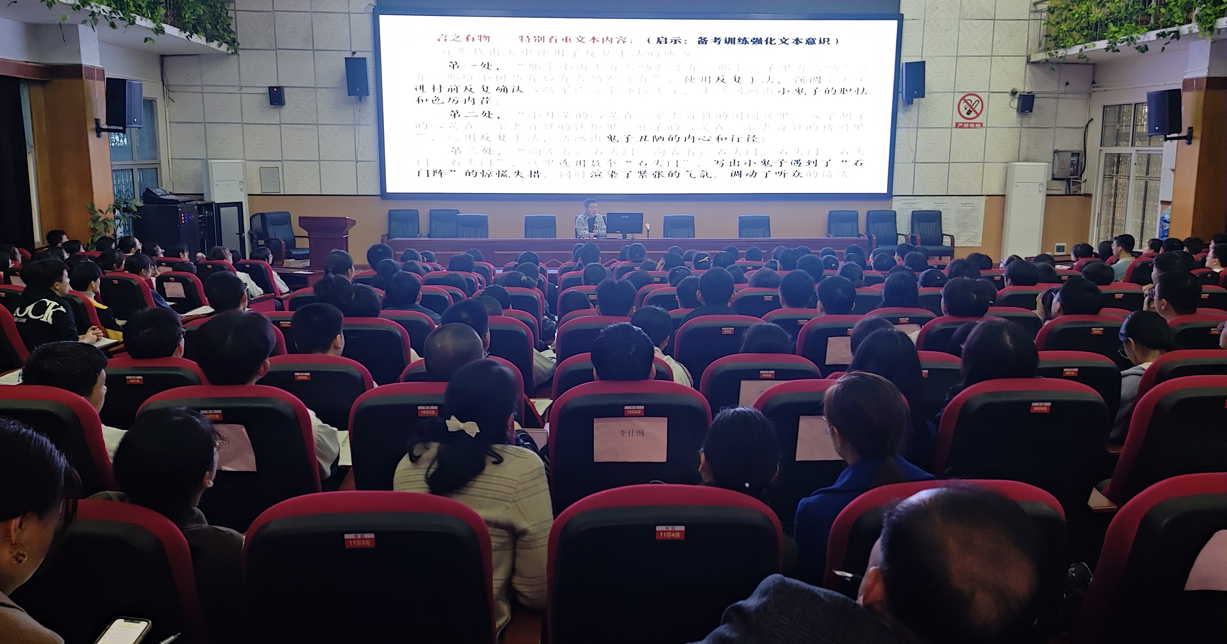 高三年級(jí)學(xué)生及全體語文老師到場(chǎng)聆聽、學(xué)習(xí)。