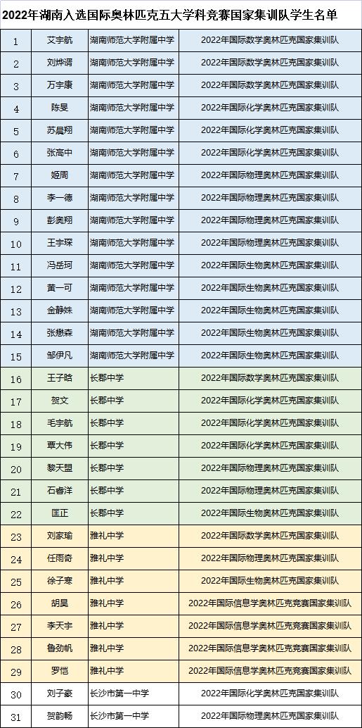 長沙晚報掌上長沙3月18日訊(全媒體記者 舒文)今日,中國科協青少年科技中心發布2022年國際奧林匹克五大學科(數學、物理、化學、生物以及信息學)競賽國家集訓隊名單,全國共有260名學生入選。湖南作為競賽強省今年取得了不俗的成績,共有31名學生入選,總人數居全國第二。