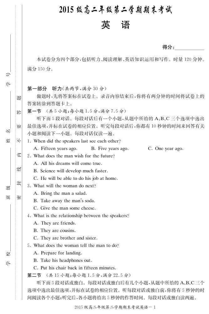 2026年高中寒假作業自主學習作業本·高二年級·英語